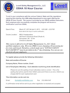 Save the Date! The OSHA 10-Hour Course, Rennselaer, NY, March 27th and April 3rd, 2013.