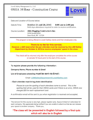OSHA 10 Hour – Construction Course Deer Park, NY